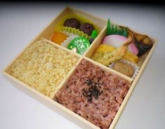 鯛めしと赤飯のお弁当。デザートに「あんこ餅とあんず煮」入り。わさび漬けの辛味もアクセントに。 アレルギー対応不可 ※季節・仕入れ等諸事情により料理内容・容器が異なる場合がございます。